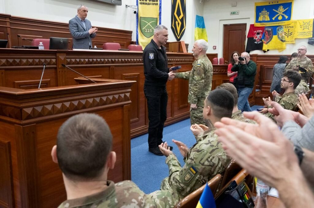 На початку засідання Київради міський голова Віталій Кличко вручив нагороди 11-ти військовослужбовцям 1-го корпусу «Азов» Національної гвардії України — відзнаки «Знак пошани» та медалі «Честь. Слава. Держава», повідомив мер у телеграм-каналі, передає Хронікерс.