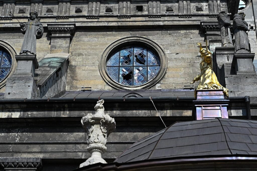 Церква святого Андрія постраждала незначно – з 16 вітражних композицій вибито 4, ще одна має невелике пошкодження. Більшість з них врятував завчасно встановлений захист.