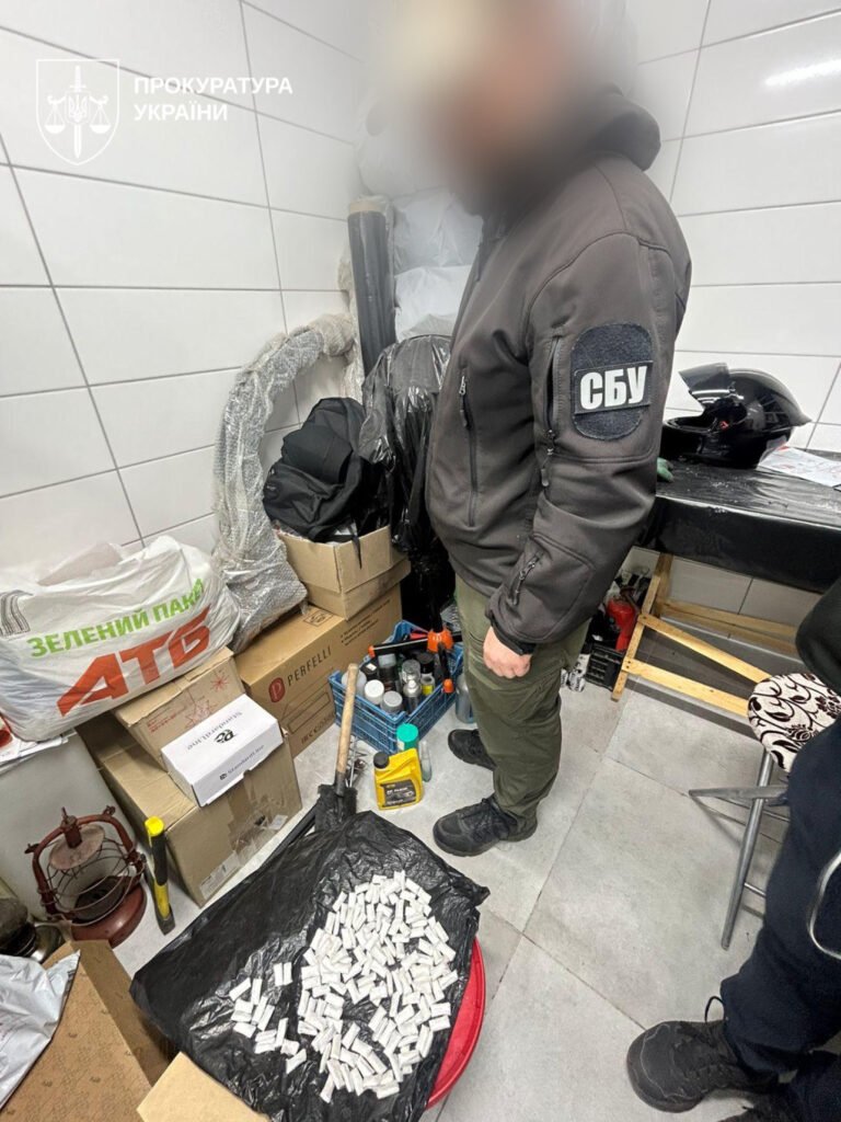 «Крім того, у гаражі 37-річного учасника схеми виявлено психотропні речовини та зброю: дві одиниці автоматичної зброї, три пістолети, помпова рушниця, гранати з підривником та велика кількість набоїв», – йдеться у повідомленні.