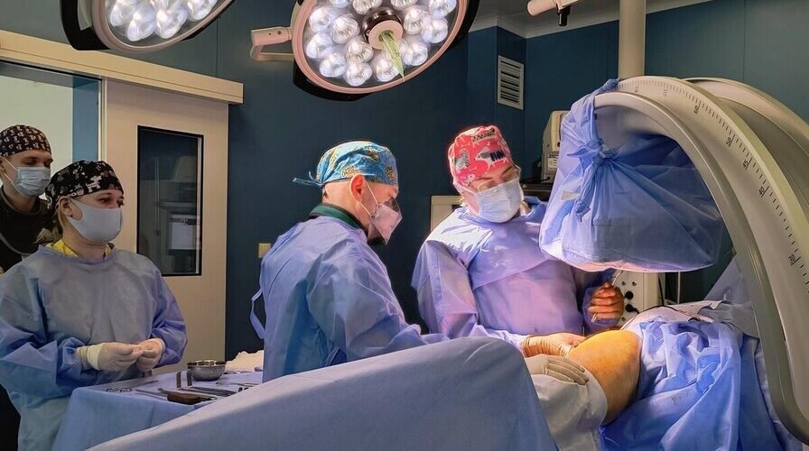 Під час операції лікарі спершу видалили шурупи, що блокували суглоб. Потім виконали складну репозицію, тобто встановили фрагменти кістки у правильне положення, та зафіксували їх спеціальною пластиною.