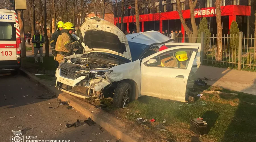 За даними рятувальників, трапилась аварія на вулиці Волонтерів Саксаганського району. Сталося зіткнення трьох автомобілів: «Mazda CX-5», «Skoda Octavia» та «Renault Sandero». В останньому понівеченому легковику знаходилось затиснуте тіло чоловіка та травмована жінка.