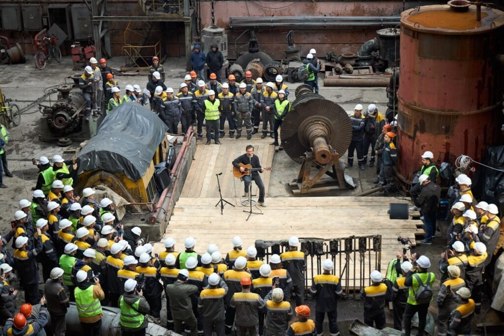 Святослав Вакарчук виступив для енергетиків ДТЕК на зруйнованій теплоелектростанції після найважчої зими