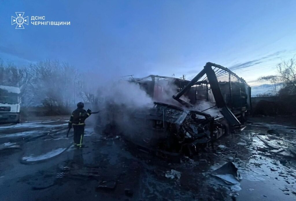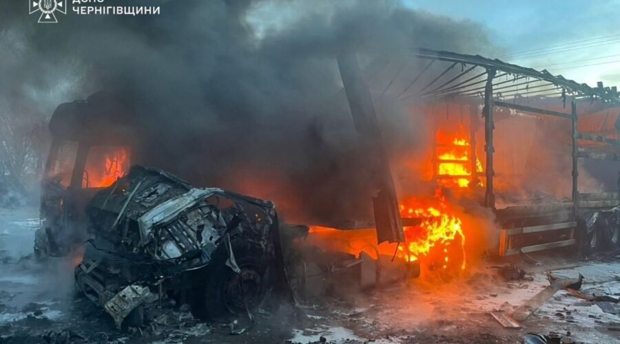 У Менській громаді ударні безпілотники атакували приватну автостоянку – через вибухи та пожежу знищені та пошкоджені вантажівки. Рятувальники ліквідували займання.