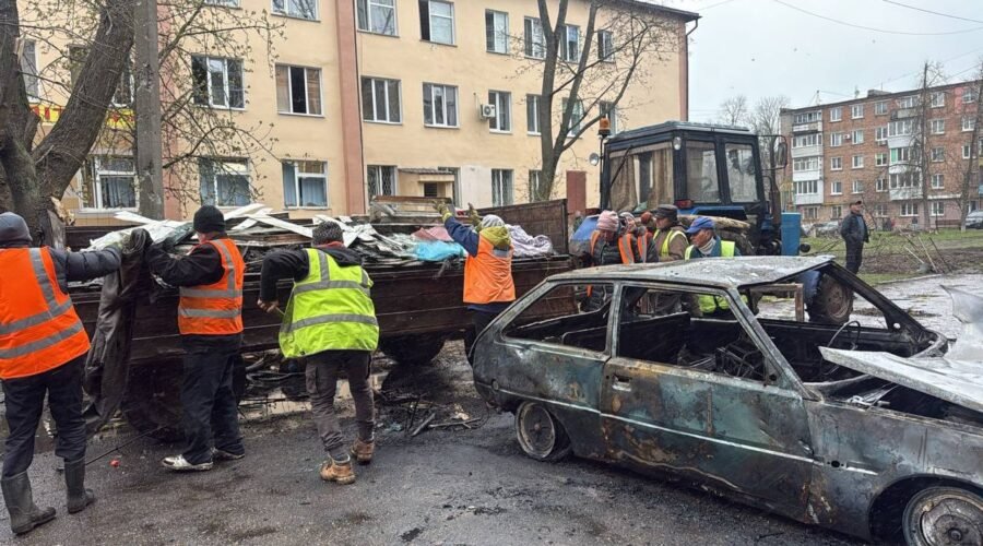 Внаслідок атаки загорілися адміністративна будівля, житлова 5-поверхівка, де потрощило квартири, та автомобілі.