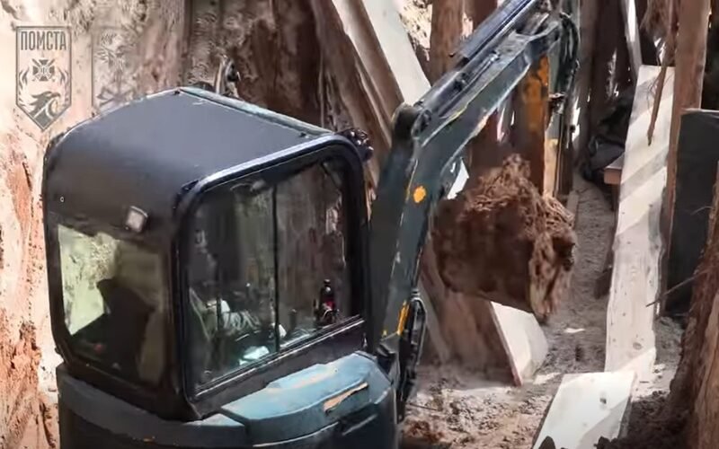 На відео видно, як важка техніка прорізає лісовий ґрунт, формуючи траншеї, які додатково укріплюють масивними колодами. Паралельно інженери розгорнули мобільну бурову установку, щоб пробити свердловину та забезпечити підрозділ водою.