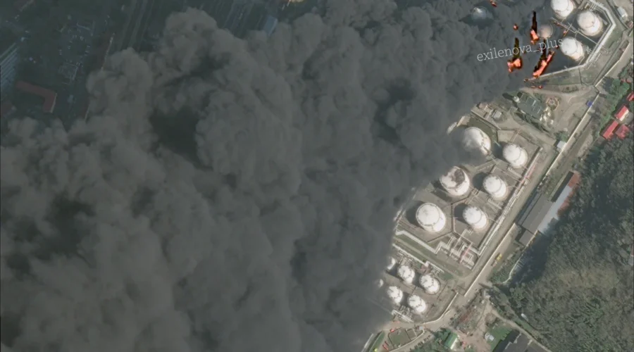 За даними місцевих пабліків, вогонь з місця ураження міг перекинутися на сусідні резервуари. Принаймні з ночі там вирує пожежа.