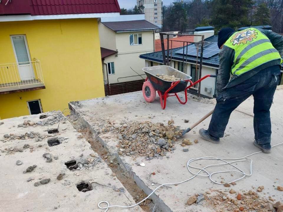 Наразі триває монтаж перемичок і влаштування міжкімнатних перегородок, що забезпечує поетапне відновлення конструкцій будівлі.