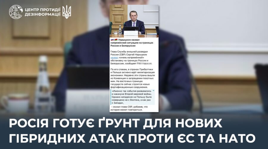 “Очільник служби зовнішньої розвідки рф сергій наришкін заявив про нібито “напружену ситуацію” на кордонах росії та білорусі, звинувативши країни Балтії і Польщу в “мілітаризації економіки”, натякаючи на “підготовку нападу на рф”, – йдеться у повідомленні.