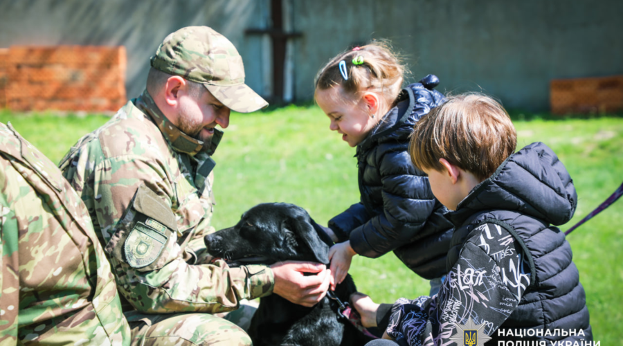 У Черкасах для дітей загиблих на війні поліцейських провели сеанс каністерапії.
