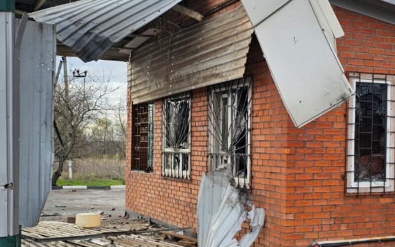 “Влучання відбулося в місцеву автозаправну станцію. Постраждали троє цивільних чоловіків – 43, 45, 64 років. Поранених доставили до лікарні. На місці події зайнялась пожежа. Пошкоджені автівки”. – йдеться у повідомленні.