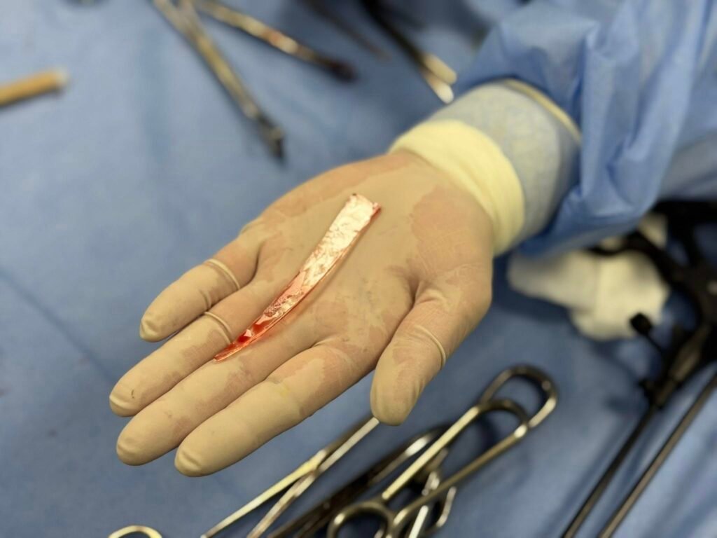 «Грудна клітка – це ділянка, де розміщені великі судинні структури, пошкодження яких може викликати профузну кровотечу, яку хірурги не завжди можуть зупинити. Була небезпека, що стороннє тіло може мігрувати й завдати те пошкодження, від якого пацієнт загине», — розповідає торакальний хірург Лікарні Святого Луки Тарас Мельничук.