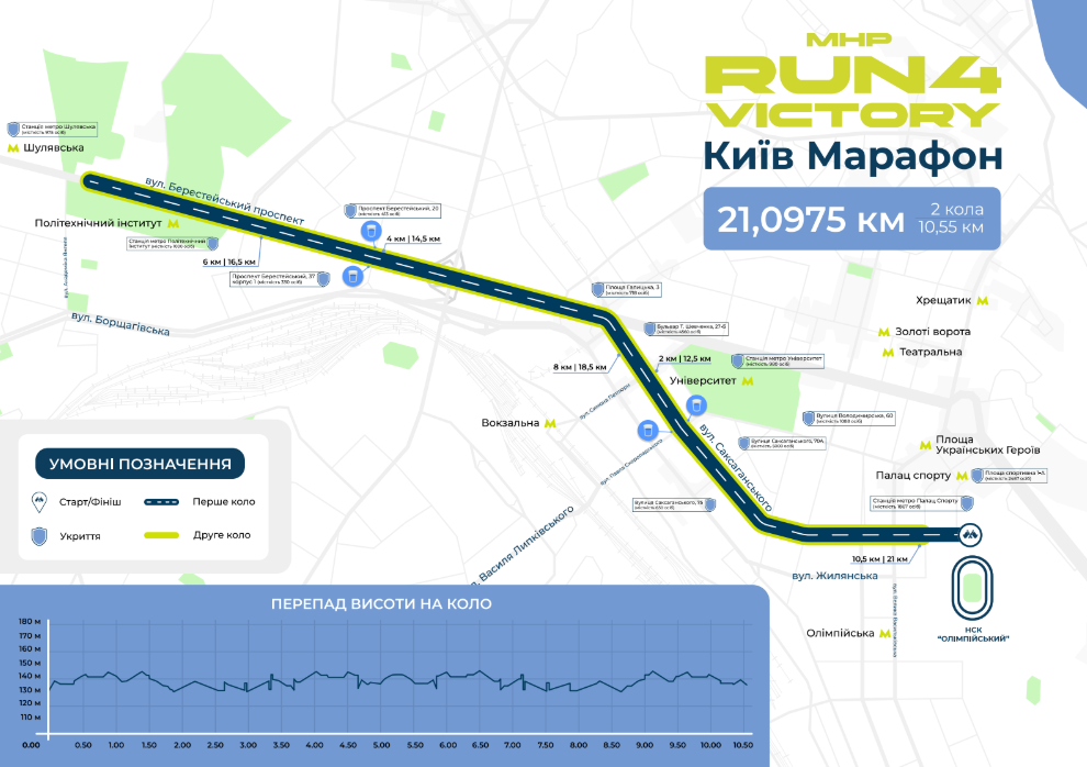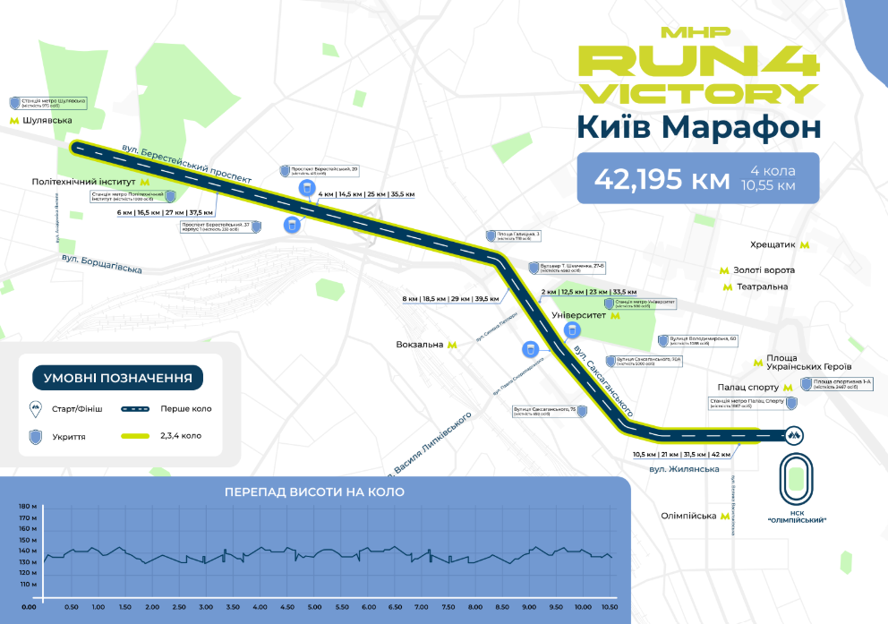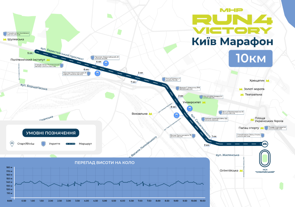 На дистанції працюватимуть пункти гідратації, а перепад висоти становитиме від 130 до 145 метрів.