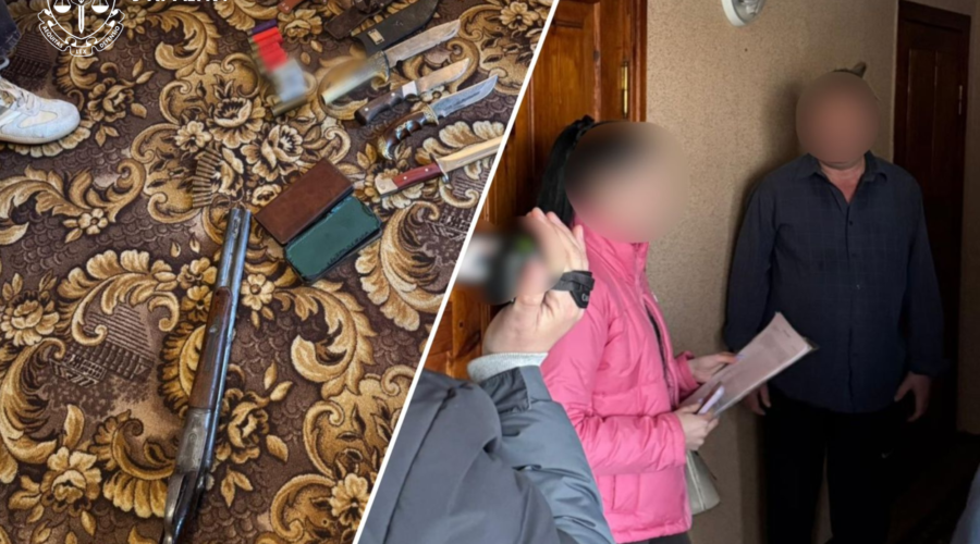 Під час обшуку за місцем проживання вилучено мобільний телефон із доказами, а також предмети, схожі на обріз і ножі.