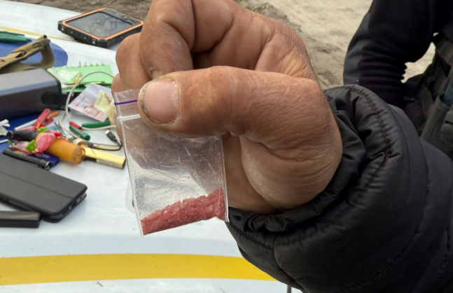 Під час поверхневої перевірки у 43-річного чоловіка виявили зіп-пакет із речовиною рожевого кольору, ймовірно, наркотичного походження.