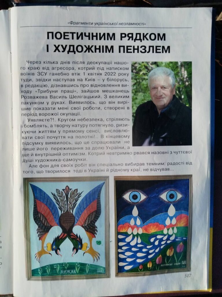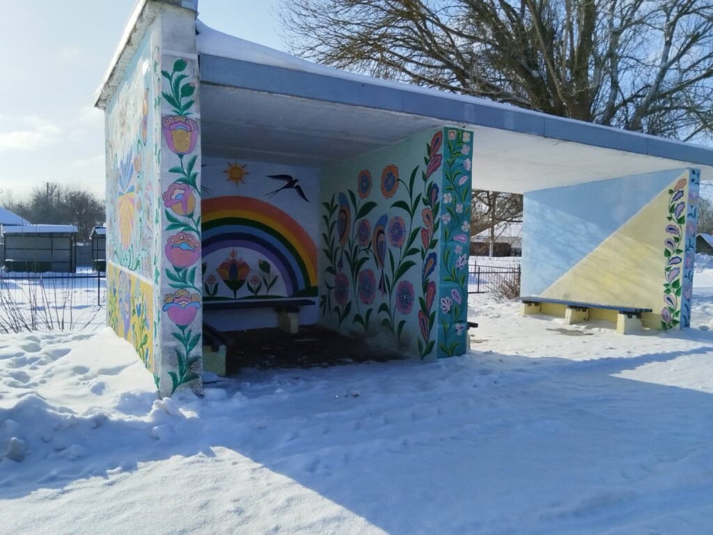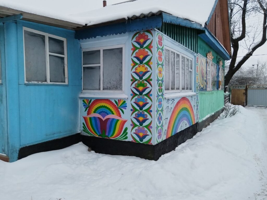 27 лютого 2022 року російські окупанти артилерійським ударом знищили його. Василь Іванович розмалював у впізнаваному стилі художниці усе село: школи, будинки, зупинки. А його власні картини розбирають на виставки.