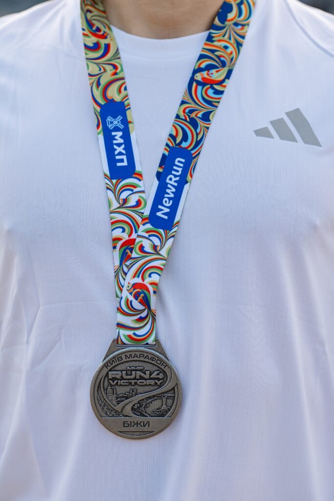 Медалі благодійних забігів MHP Run4Victory у Києві та Черкасах мають спільні елементи в основі — динамічну лінію. Вона нагадує біговий маршрут і течію Дніпра, який поєднує обидва міста. Медалі доповнені символами Києва та Черкас та відсилають до локальних пейзажів. Обидві медалі об’єднує головний сенс забігу — відновлення.