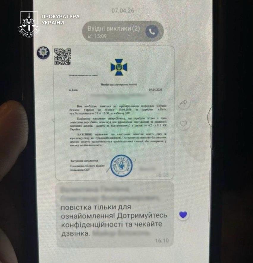 Встановлено, що киянка на один з месенджерів отримала дзвінок від чоловіка, що представився працівником СБУ. Він повідомив, що жінка підозрюється у державній зраді та має віддати на перевірку всі свої заощадження, щоб дізнатись, чи не мають ці гроші російського походження. Перевірені гроші жінці обіцяли повернути. Для того, щоб бути переконливими, шахраї їй на месенджер надсилали підроблені повістки.
