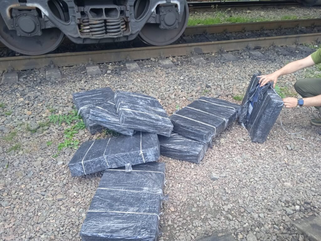 Під час огляду вантажного потяга, який у суботу, 15 червня, прямував за кордон через пункт контролю “Ізов”, оглядова група за допомогою технічних засобів прикордонного контролю виявила сторонні вкладення серед вантажу. Під шаром чорної руди оглядовики знайшли вісім пакунків з тютюновими виробами. Загалом в них було 2500 пачок сигарет.