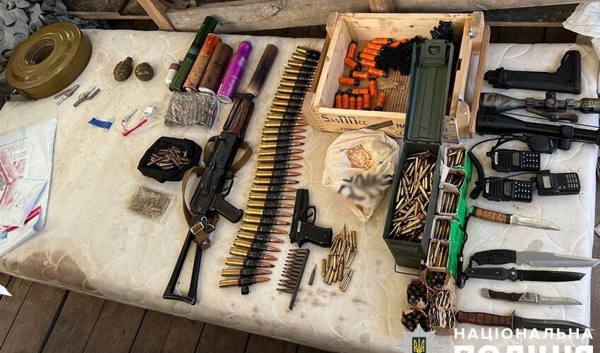 Крім того, під час слідчих дій поліцейські вилучили ще один автомат з глушником, пістолет, чотири гранати, дванадцять гранатометних пострілів, чотири кг вибухівки, півтори тисячі набоїв та інші військові засоби ураження.